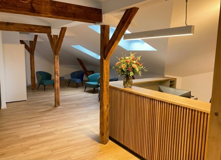 Zentral gelegen und gut erreichbar in Frankfurt-Sachsenhausen empfängt Sie unsere Tagesklinik in hellen, modern gestalteten Räumen. Klare Formen, warme Farben und liebevolle Details schaffen ein Umfeld, das Ruhe, Sicherheit und Vertrauen vermittelt.
